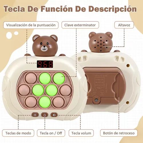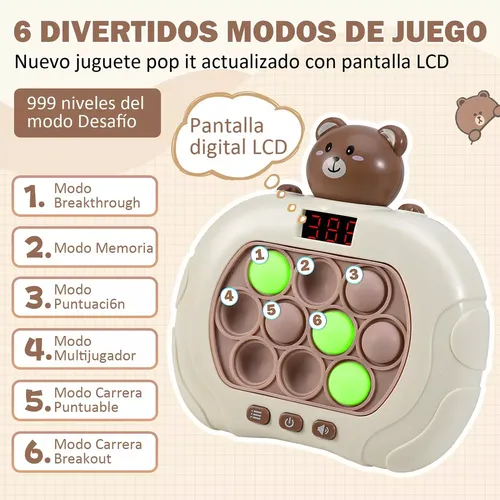 Pantalla integrada: incluye divertidos minijuegos que añaden un nivel extra de entretenimiento al tradicional pop it.